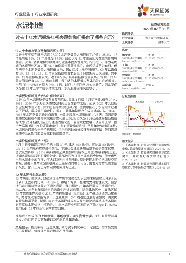 【天风证券】【20220211】过去十年水泥板块年初表现给我们提供了哪些启示-9页