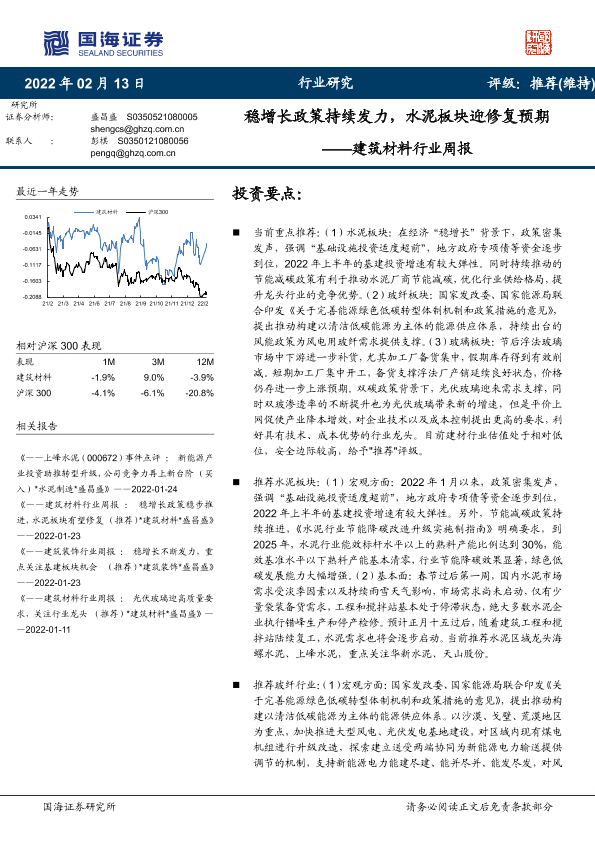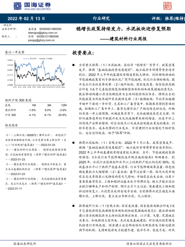 【国海证券】【20220213】稳增长政策持续发力,水泥板块迎修复预期-20页