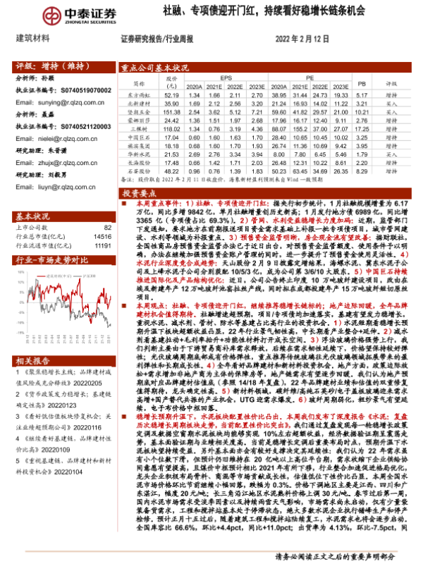 【中泰证券】【20220212】建筑材料:社融、专项债迎开门红,持续看好稳增长链条机会-25页
