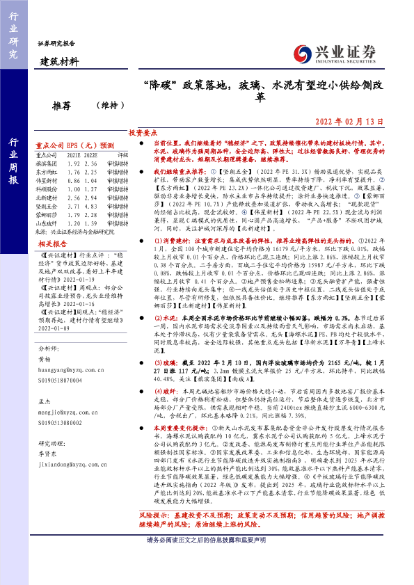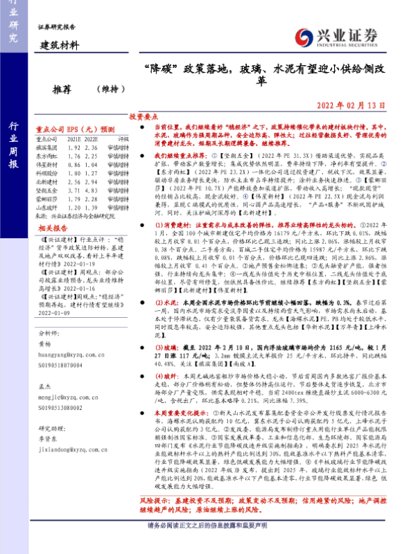 【兴业证券】【20220213】“降碳”政策落地,玻璃、水泥有望迎小供给侧改革-20页