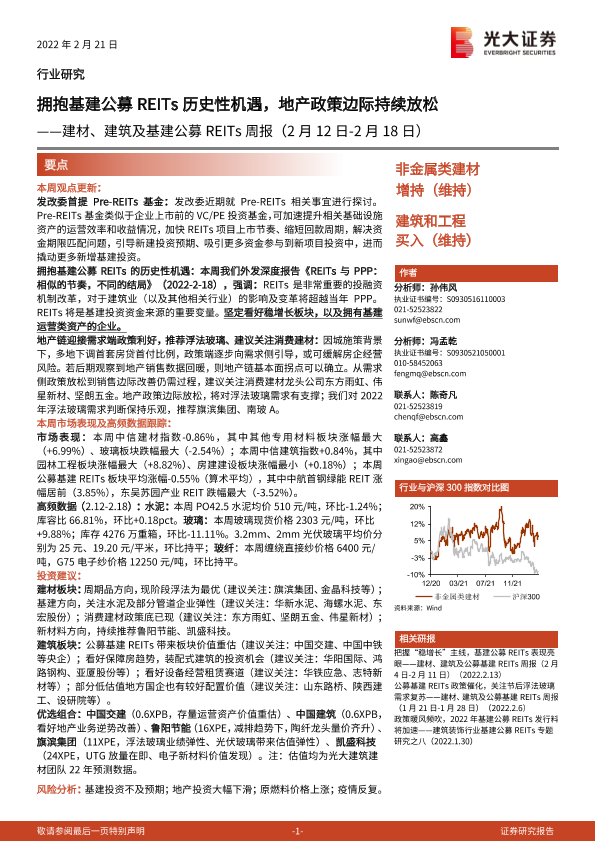 【光大证券】【20220221】建材、建筑及基建公募REITs周报:拥抱基建公募REITs历史性机遇,地产政策边际持续放松-16页