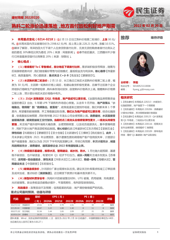 【民生证券】【20220220】建材周报:熟料二轮涨价迅速落地,地方首付放松利好地产刚需-19页