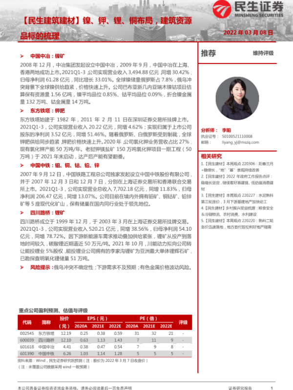 【民生证券】【20220308】镍、钾、锂、铜布局,建筑资源品标的梳理-17页