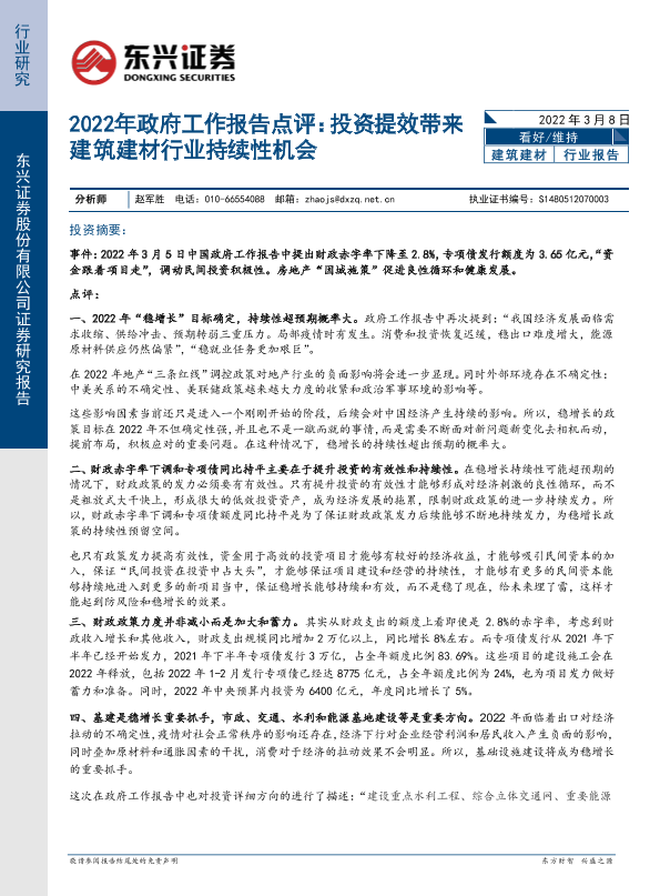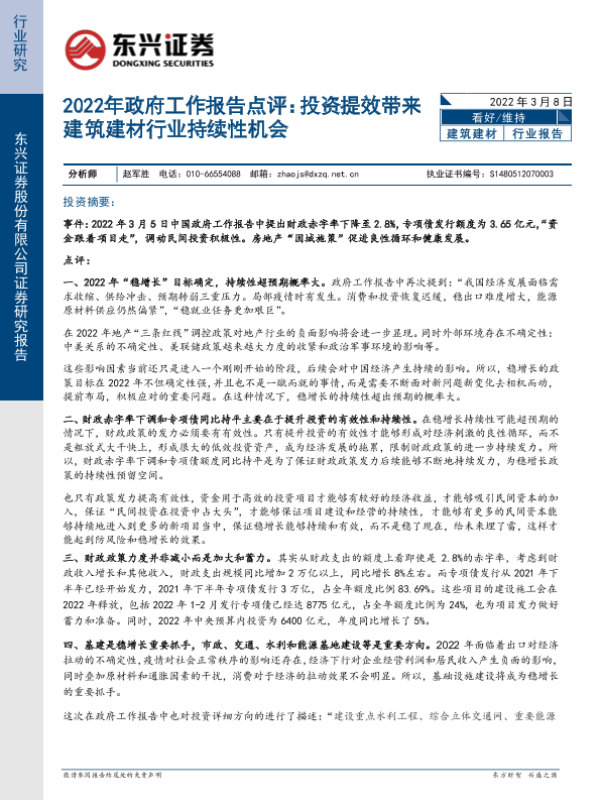 【东兴证券】【20220308】2022年政府工作报告点评:投资提效带来建筑建材行业持续性机会-6页