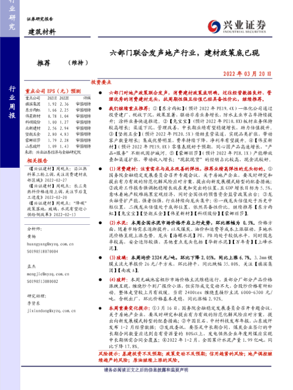 【兴业证券】【20220320】六部门联合发声地产行业,建材政策底已现-22页