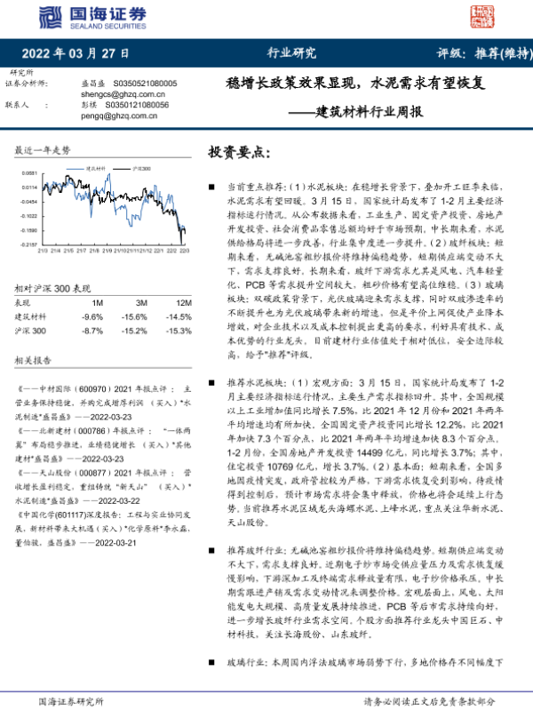 【国海证券】【20220327】稳增长政策效果显现,水泥需求有望恢复-20页