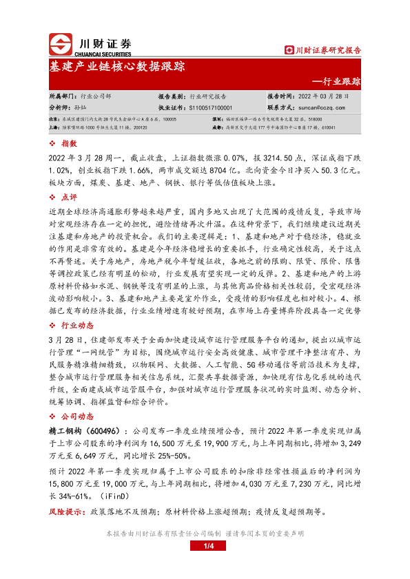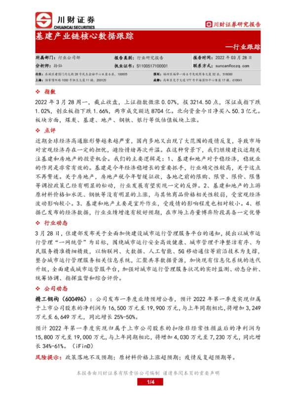 【川财证券】【20220328】基建产业链核心数据跟踪-4页