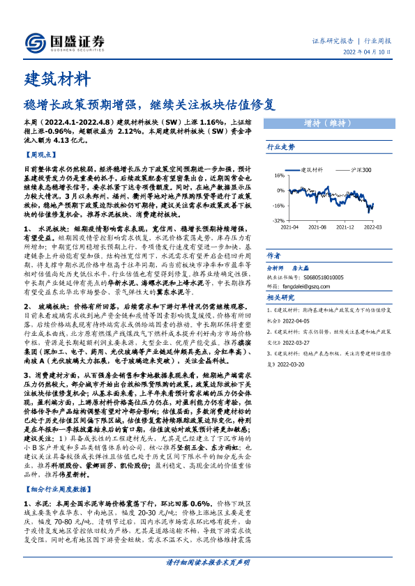 【国盛证券】【20220410】建筑材料行业周报:稳增长政策预期增强,继续关注板块估值修复-11页