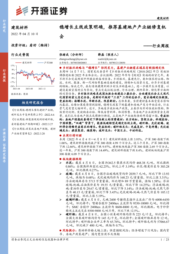 【开源证券】【20220410】建筑材料行业周报:稳增长主线政策明确,推荐基建地产产业链修复机会-23页