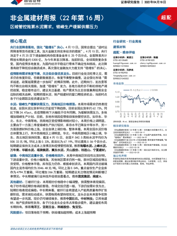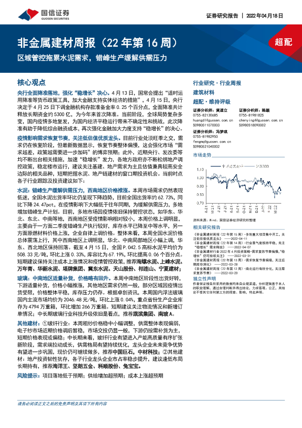 【国信证券】【20220418】非金属建材周报:区域管控拖累水泥需求,错峰生产缓解供需压力-21页