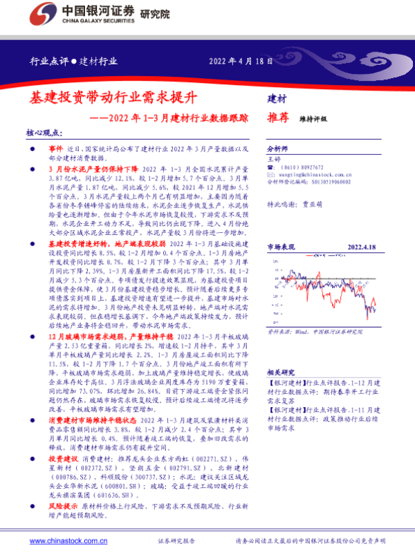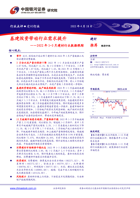 【银河证券】【20220418】2022年1-3月建材行业数据跟踪:基建投资带动行业需求提升-4页