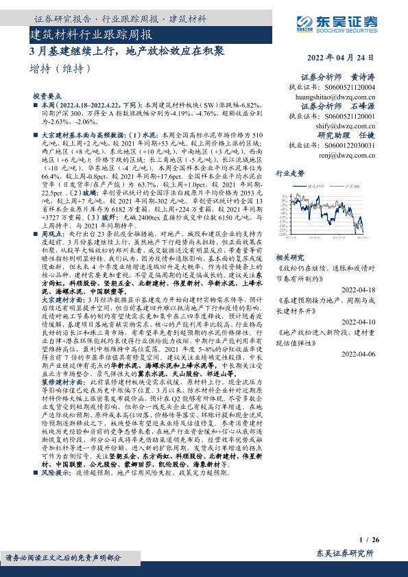 【东吴证券】【20220424】3月基建继续上行,地产放松效应在积聚-26页