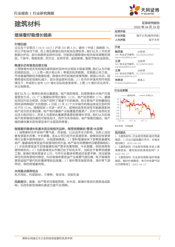 【天风证券】【20220424】建筑材料行业研究周报:继续看好稳增长链条-6页