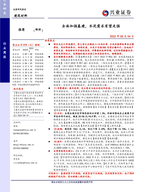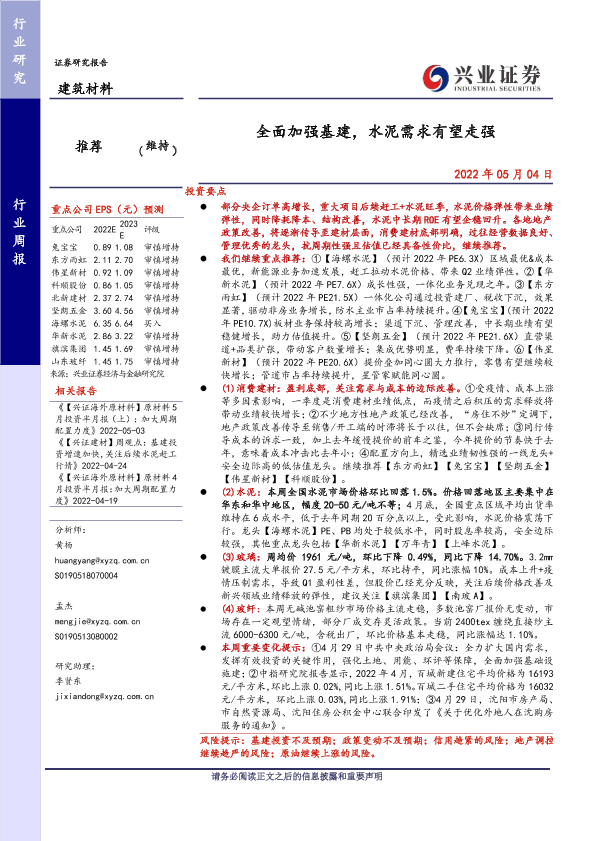 【兴业证券】【20220504】全面加强基建,水泥需求有望走强-23页