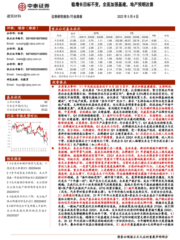 【中泰证券】【20220504】稳增长目标不变,全面加强基建,地产预期改善-26页