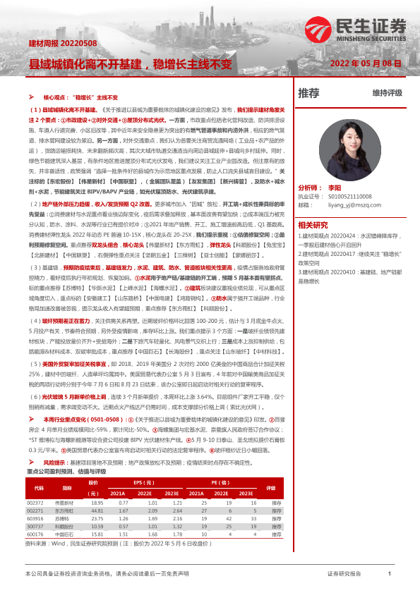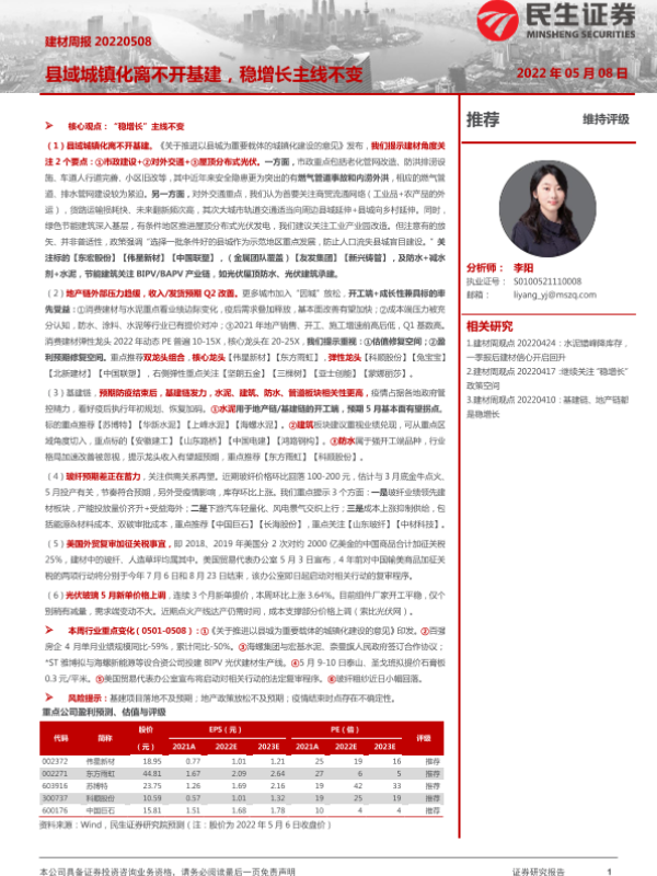 【民生证券】【20220508】建材周报:县域城镇化离不开基建,稳增长主线不变-20页