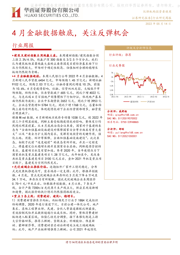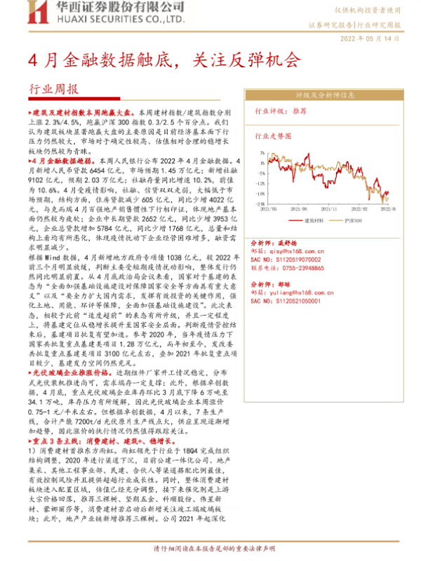 【华西证券】【20220514】建筑材料行业周报:4月金融数据触底,关注反弹机会-17页