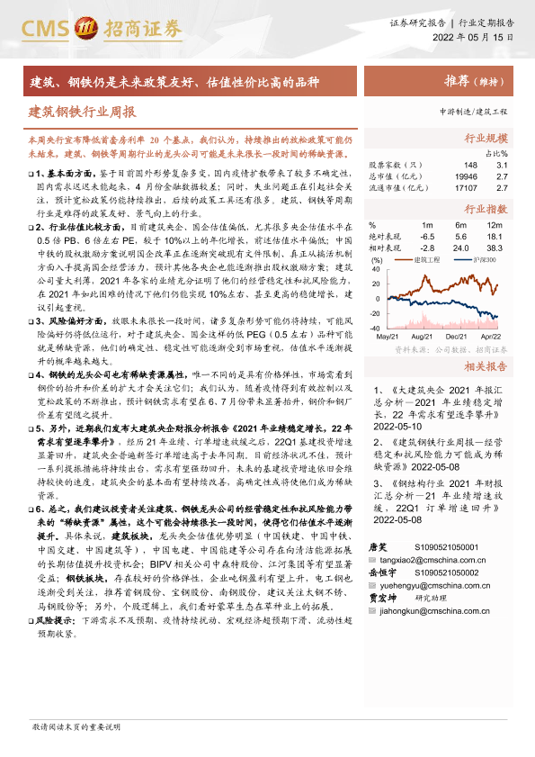 【海通证券】【20220515】建筑钢铁行业周报:建筑、钢铁仍是未来政策友好、估值性价比高的品种-3页