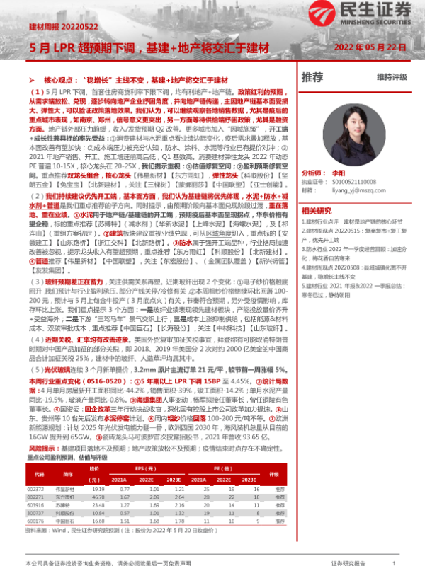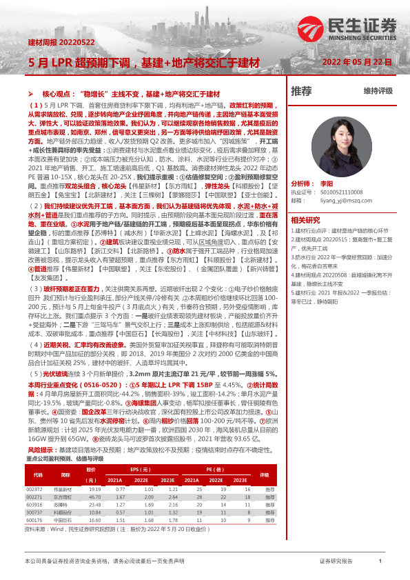 【民生证券】【20220522】建材周报:5月LPR超预期下调,基建+地产将交汇于建材-21页