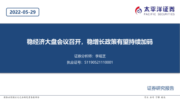【太平洋证券】【20220529】稳经济大盘会议召开,稳增长政策有望持续加码-21页