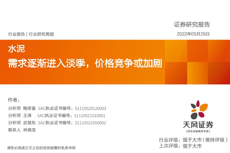 【天风证券】【20220529】水泥行业研究周报:需求逐渐进入淡季,价格竞争或加剧-20页
