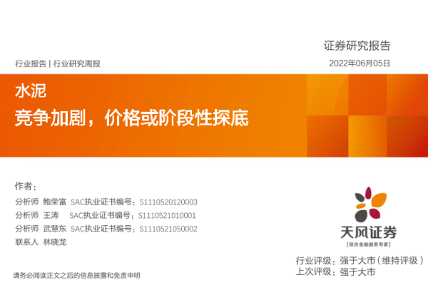 【天风证券】【20220605】水泥行业研究周报:竞争加剧,价格或阶段性探底-20页