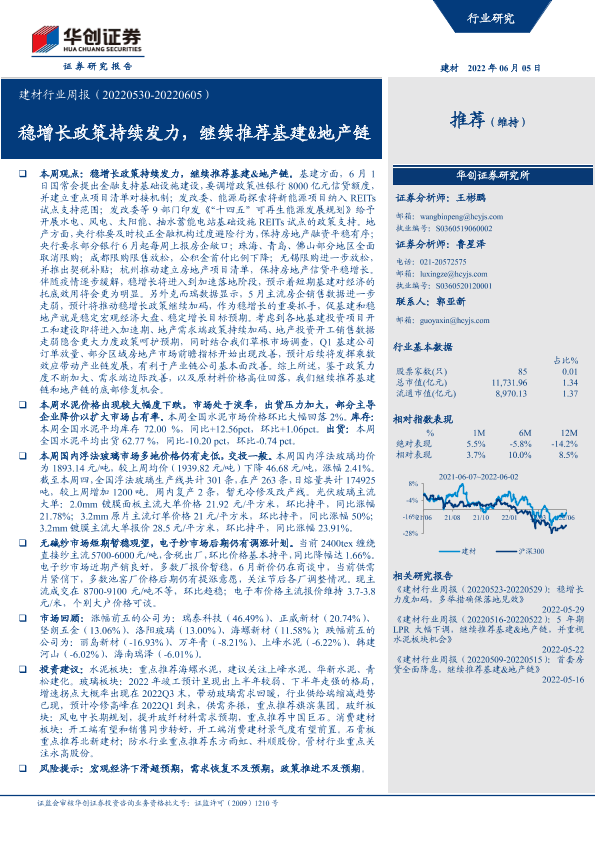 【华创证券】【20220605】建材行业周报:稳增长政策持续发力,继续推荐基建&地产链-19页