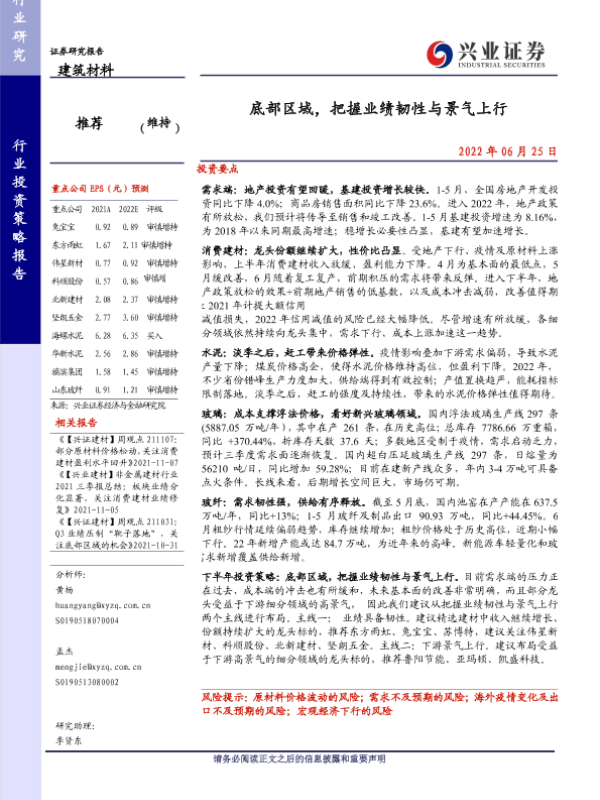 【兴业证券】【20220625】底部区域,把握业绩韧性与景气上行-42页