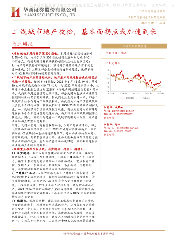 【华西证券】【20220626】建筑材料行业周报:二线城市地产放松,基本面拐点或加速到来-18页