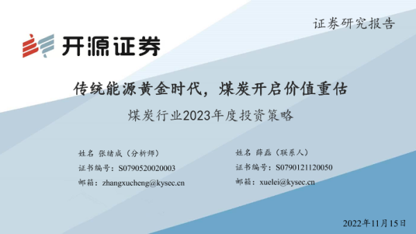 【开源证券】【20221115】煤炭行业2023年度投资策略:传统能源黄金时代,煤炭开启价值重估-34页