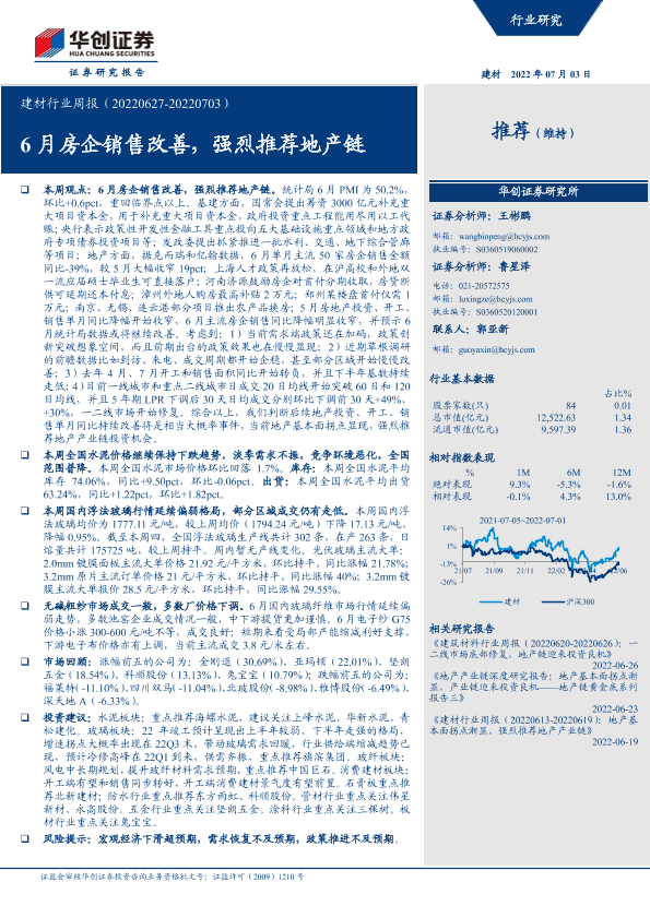 【华创证券】【20220703】6月房企销售改善,强烈推荐地产链-19页