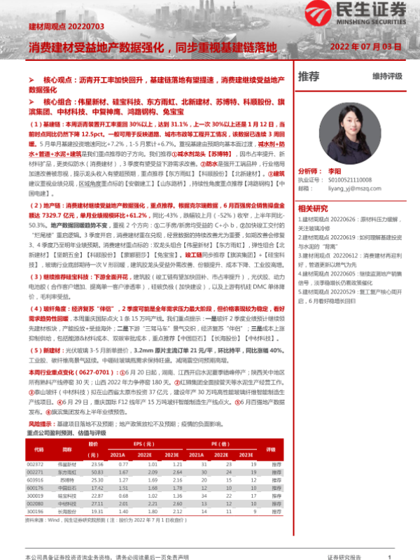 【民生证券】【20220703】建材周观点:消费建材受益地产数据强化,同步重视基建链落地-20页