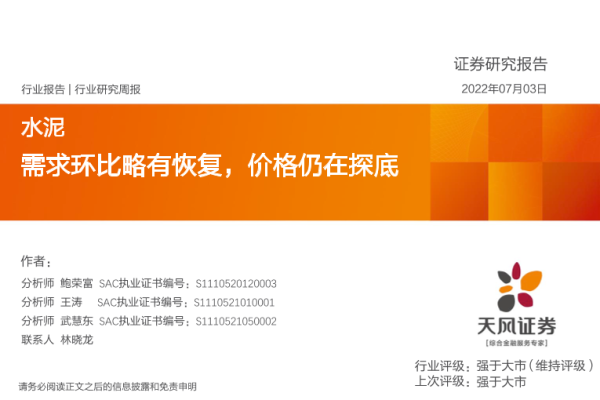 【天风证券】【20220703】水泥行业研究周报:需求环比略有恢复,价格仍在探底-20页