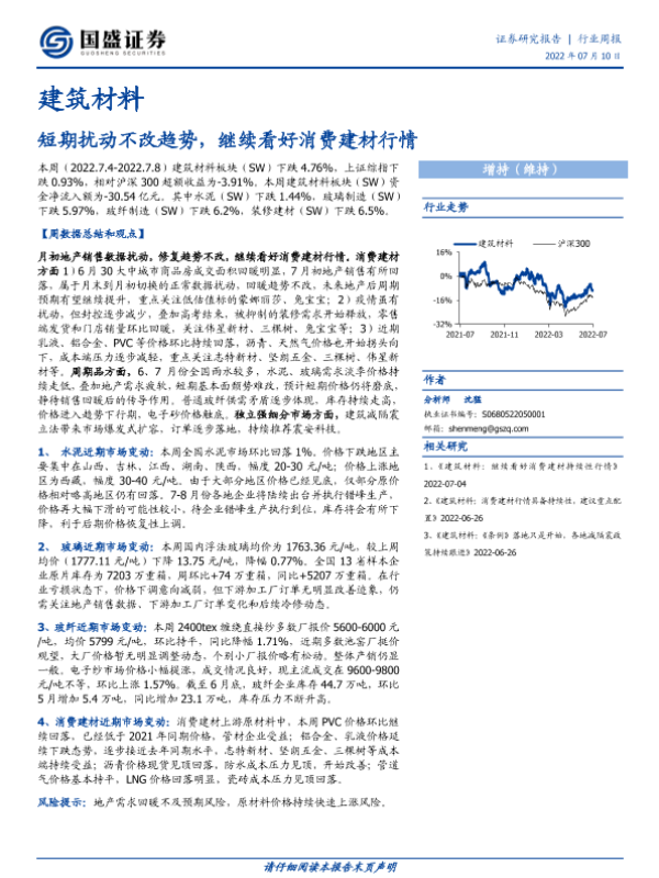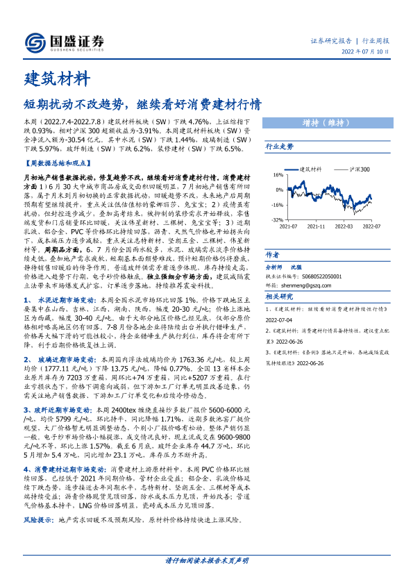 【国盛证券】【20220710】短期扰动不改趋势,继续看好消费建材行情-12页