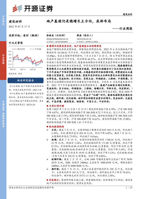 【开源证券】【20220717】建筑材料行业周报:地产基建仍是稳增长主方向,底部布局-27页
