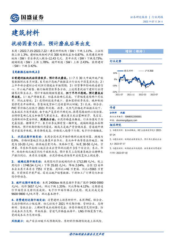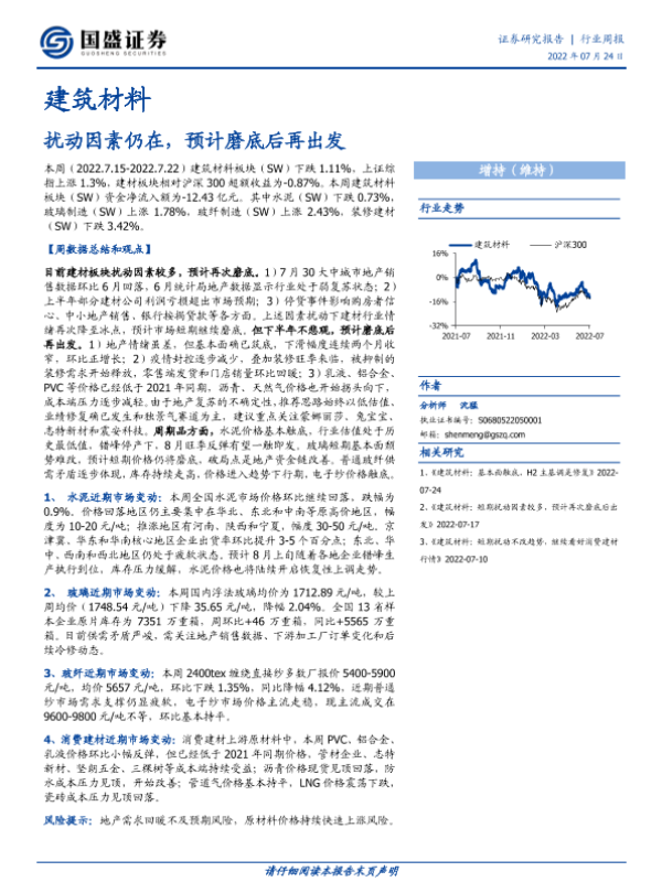 【国盛证券】【20220724】建筑材料行业周报:扰动因素仍在,预计磨底后再出发-12页