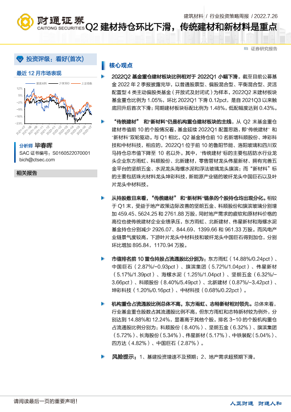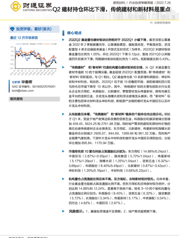 【财通证券】【20220726】Q2建材持仓环比下滑,传统建材和新材料是重点-6页