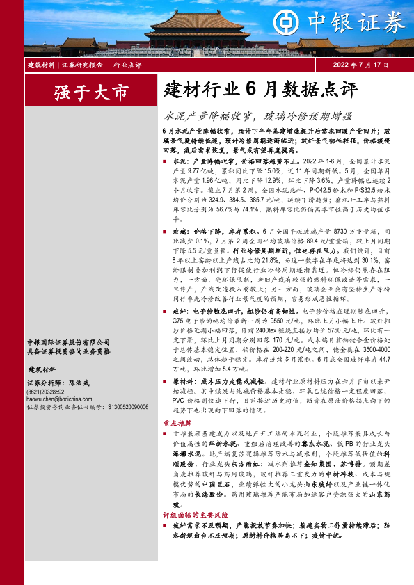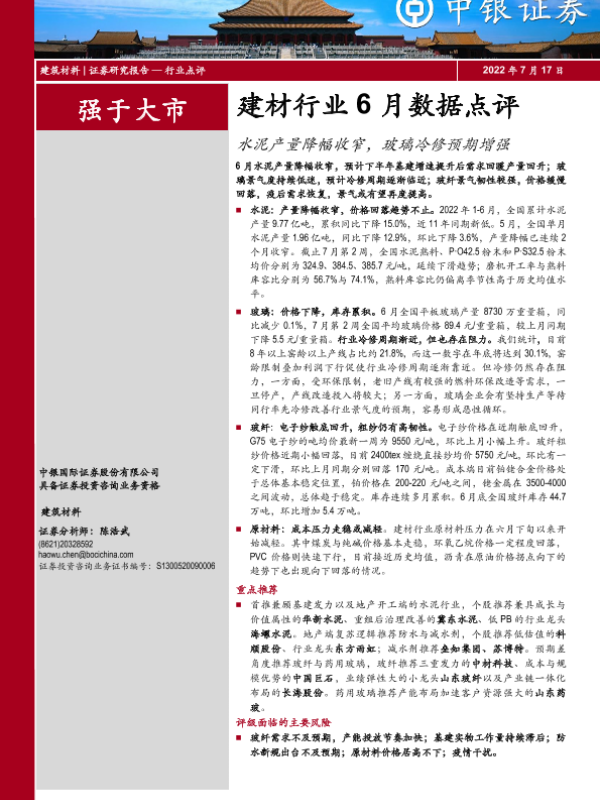 【中银证券】【20220717】建材行业6月数据点评:水泥产量降幅收窄,玻璃冷修预期增强-11页