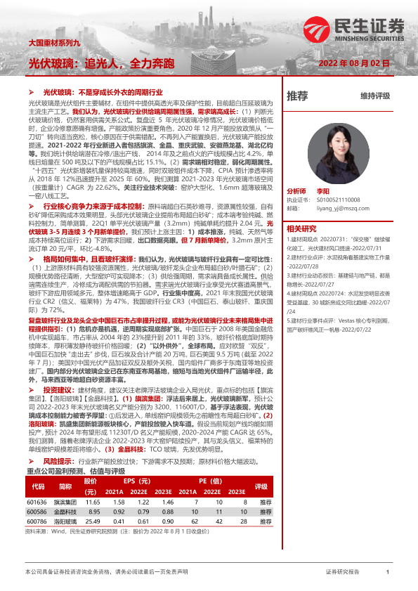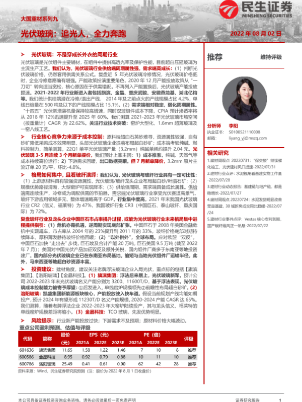 【民生证券】【20220802】大国重材系列九:光伏玻璃:追光人,全力奔跑-43页