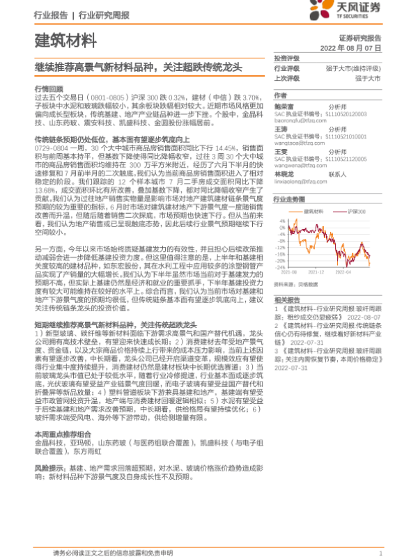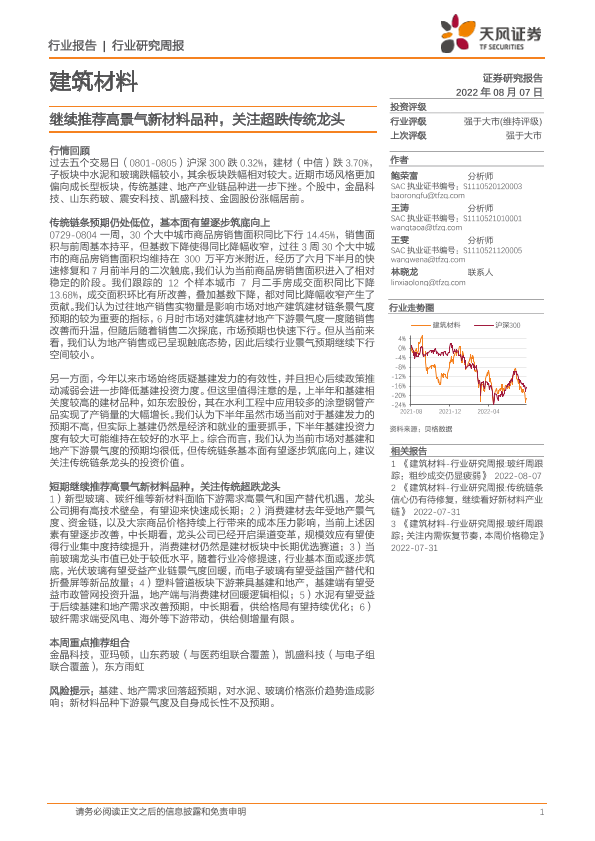 【天风证券】【20220807】建筑材料:继续推荐高景气新材料品种,关注超跌传统龙头-6页