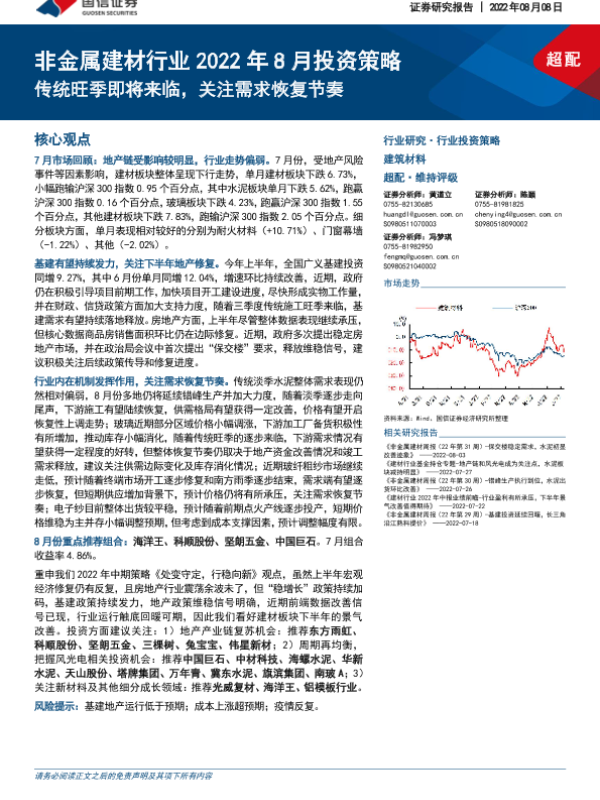【国信证券】【20220808】非金属建材行业2022年8月投资策略-34页