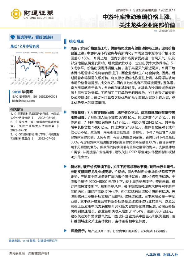 【财通证券】【20220814】建筑材料行业投资策略周报:中游补库推动玻璃价格上涨,关注龙头企业底部价值-2页