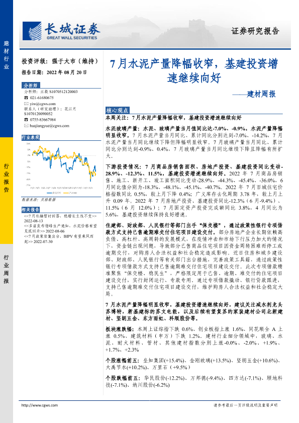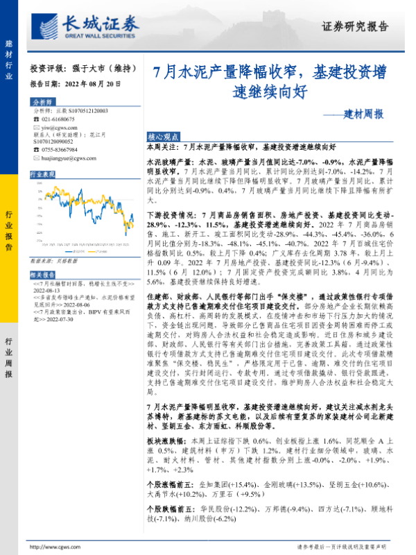 【长城证券】【20220820】7月水泥产量降幅收窄,基建投资增速继续向好-24页