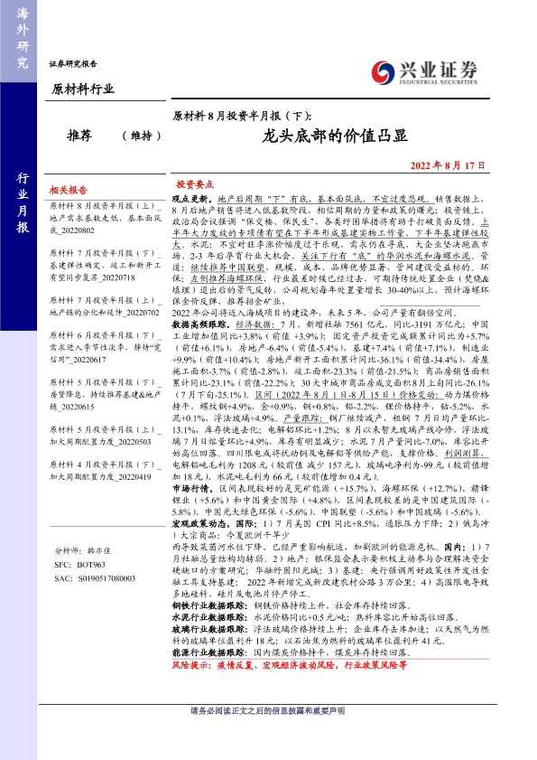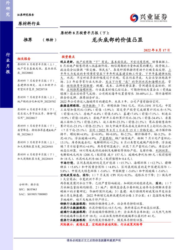 【兴业证券】【20220817】原材料8月投资半月报(下):龙头底部的价值凸显-23页