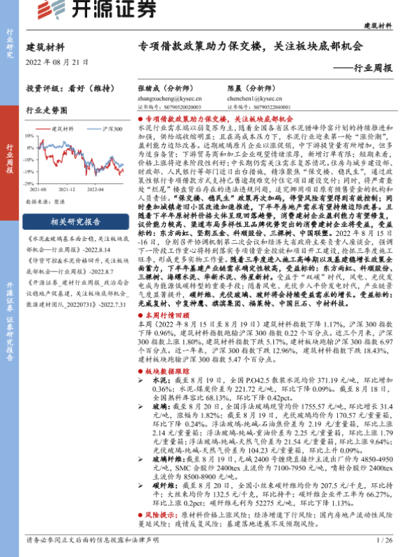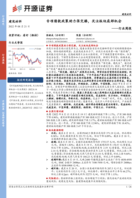【开源证券】【20220821】建筑材料行业周报:专项借款政策助力保交楼,关注板块底部机会-26页