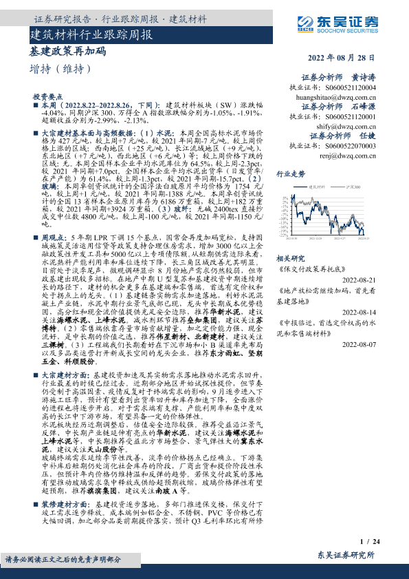 【东吴证券】【20220828】建筑材料行业跟踪周报:基建政策再加码-24页