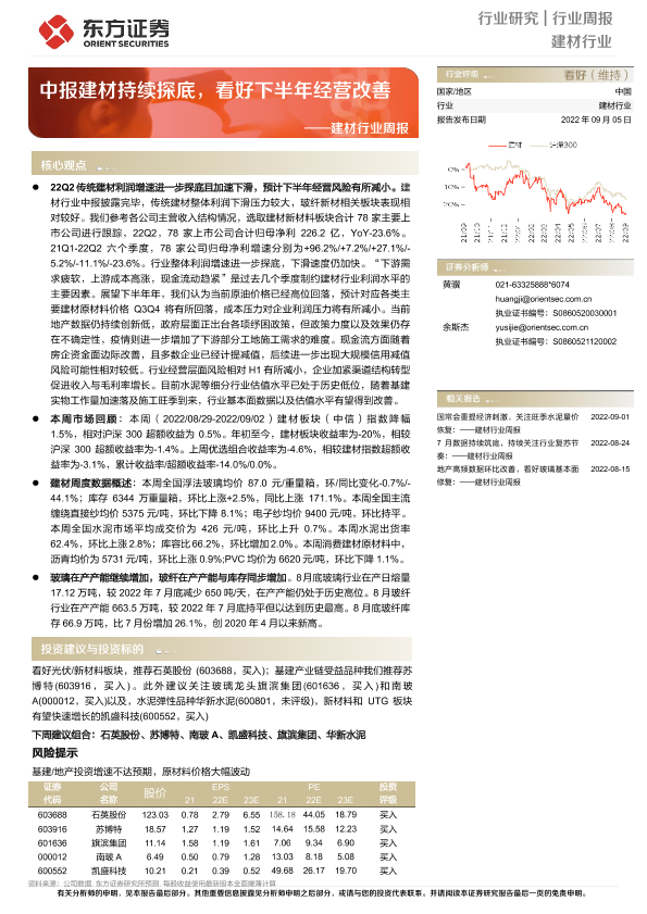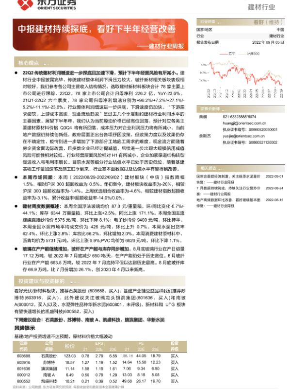 【东方证券】【20220905】建材行业周报:中报建材持续探底,看好下半年经营改善-22页