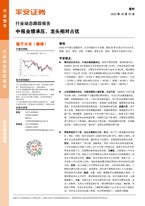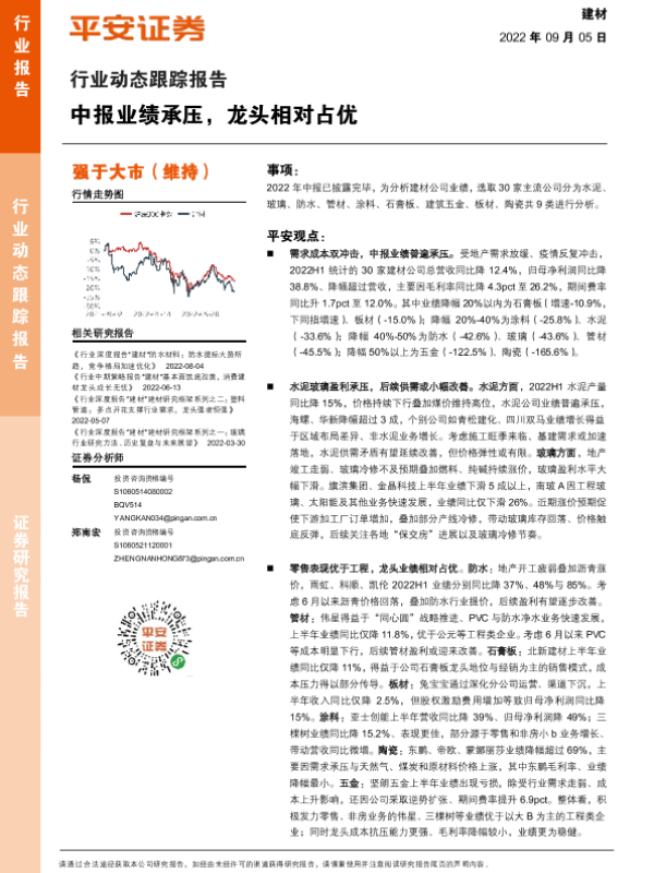【平安证券】【20220905】建材行业动态跟踪报告:中报业绩承压,龙头相对占优-18页