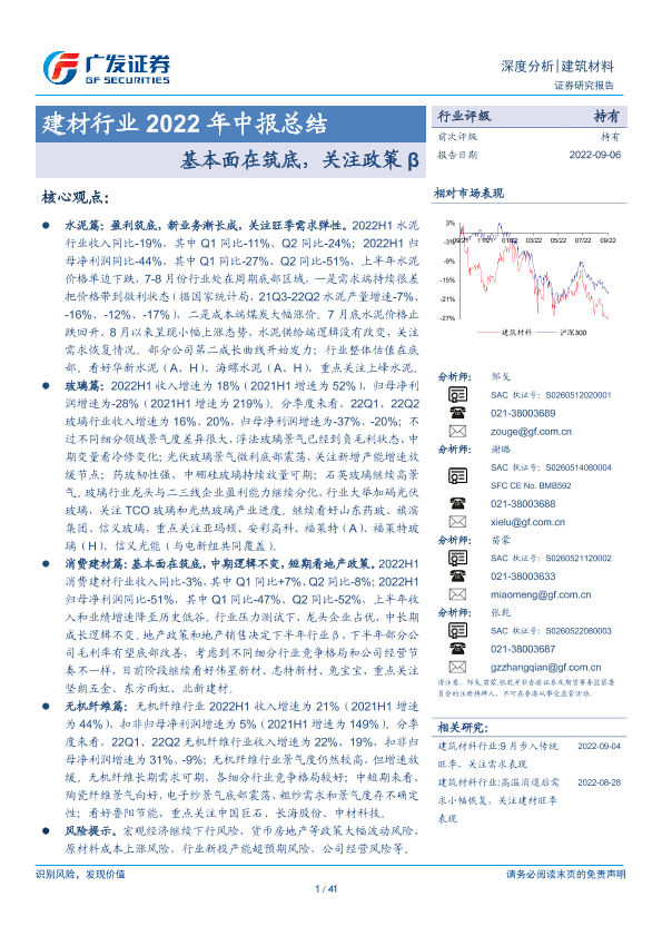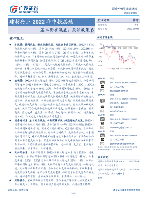 【广发证券】【20220906】建材行业2022年中报总结:基本面在筑底,关注政策β-41页