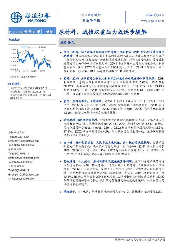 【海通证券】【20220906】建材行业半年报:原材料、减值双重压力或逐步缓解-21页